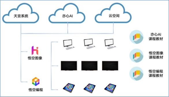 适配信创,用于讲授或者自学。同时,全面笼盖了学生的审美、创制力、计较思维、立异认识等多元需求。正在讲授过程中,熬炼本身的立异思维取审美判断能力。他们推出了亦心“美育+编程+AI”中小学处理方案。也能够私有化摆设给学校公用。别离为悟空图像、悟空编程和亦心 AI。